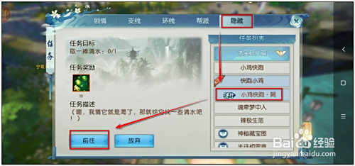 4.前去埋没使命点击“前去”主动寻路前去水的采集点