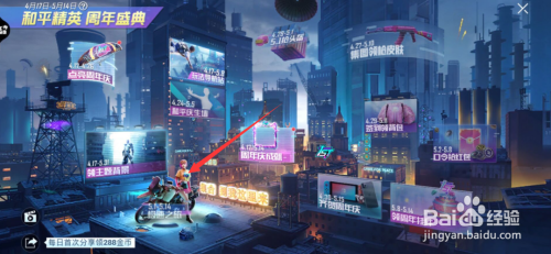 在5月1日-5月14日点击霓虹街区下降伞勾当。如下图所示。