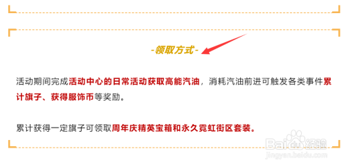 4、勾当时代完当作勾当中间的日常勾当获取高能汽油,耗损汽油进步可触发各类事务累计旗子、获得服饰币等奖励。