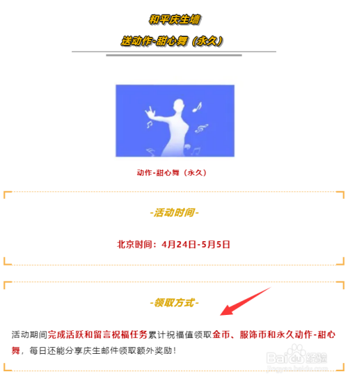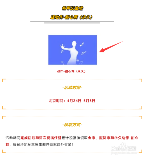计祝福值领取金币、服饰币和永远甜心舞动作。如下图所示。
