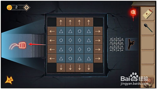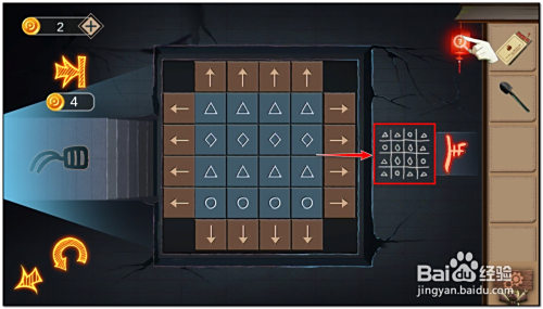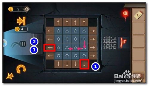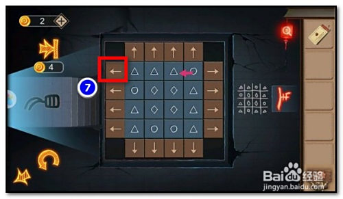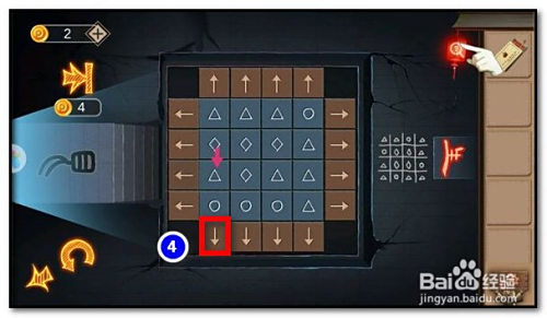 2.我们先将中心的四个菱形归位,点击第四列“下”,第三行“左左”