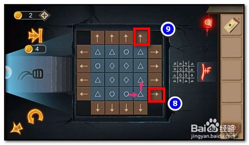 开启荒村谜云游戏进入第八关八卦通关,开启生门,需要将左边图形移动当作右边图形即可通关,近似转魔方
