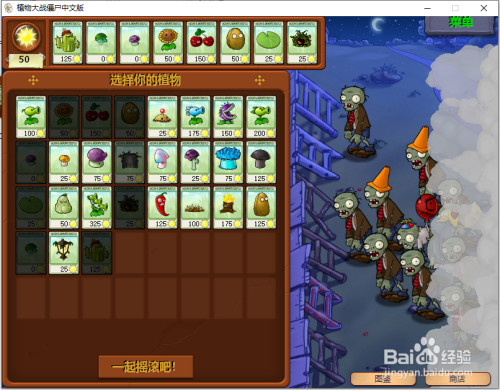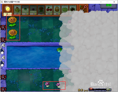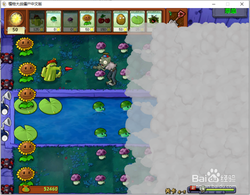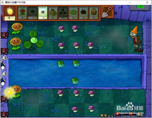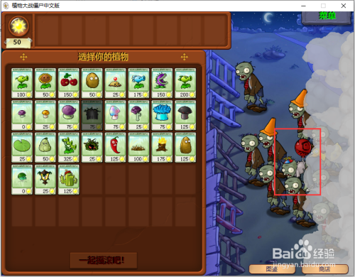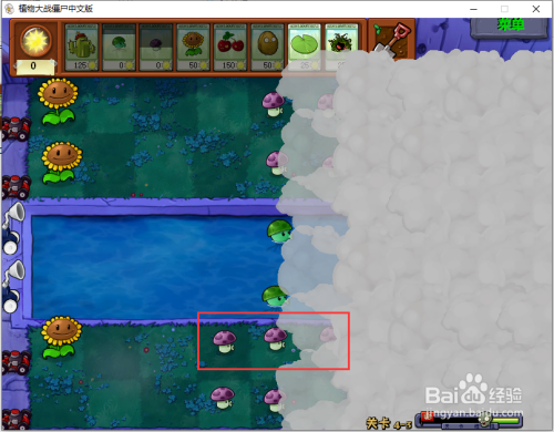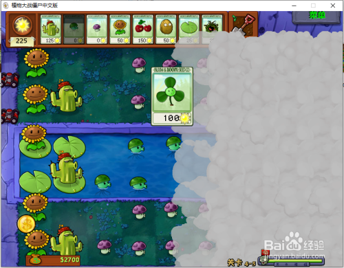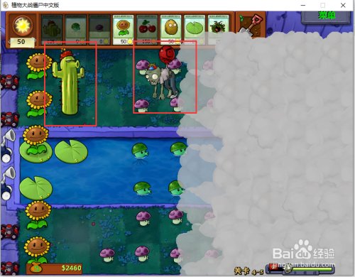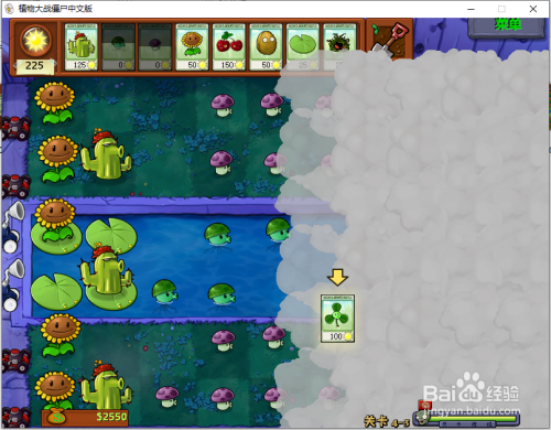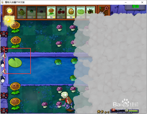 植物选择:仙人掌、海蘑菇、小喷菇、标的目的日葵、樱桃炸弹、坚果墙、睡莲和环绕纠缠海草。