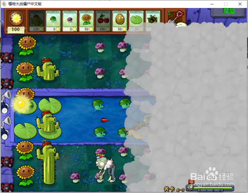 在水中抽暇莳植【睡莲】。碰到气球僵尸,在其飞翔路径上莳植【仙人掌】。