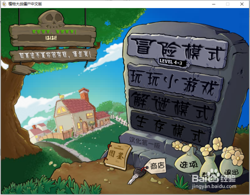 进入【植物大战僵尸】,选择【冒险模式】进入【4-3关卡】。