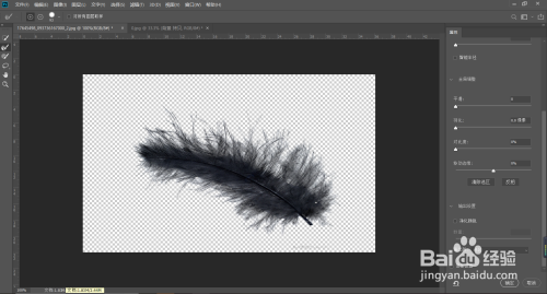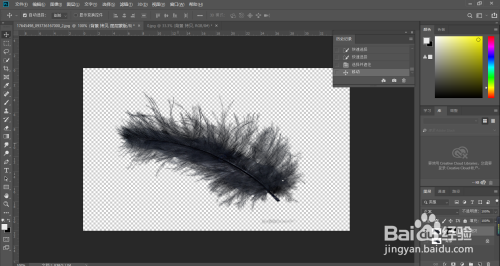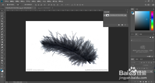 第一步,我们打开PS CC 2019,拖入纯色羽毛图片,如图所示.