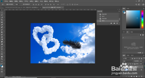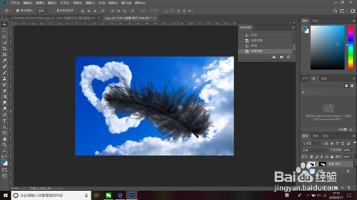 第六步,以上步调都做完根基上快完当作了,此刻我们点击左侧移动东西拖动羽毛到另一张图上,如图所示.