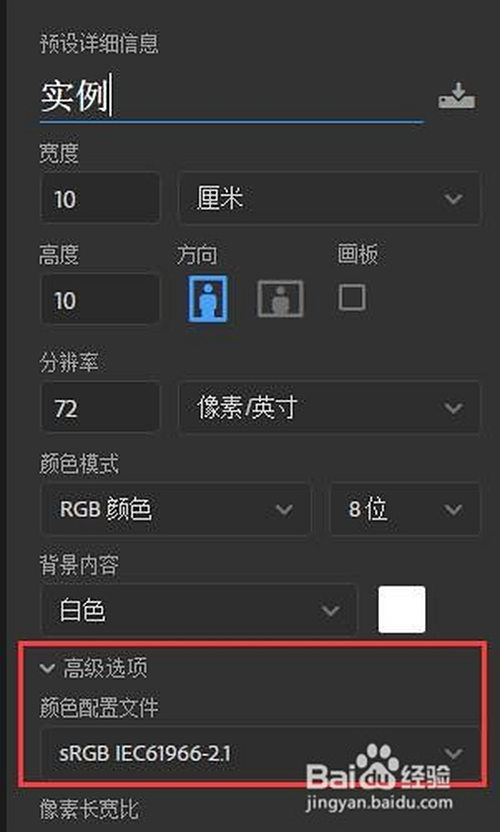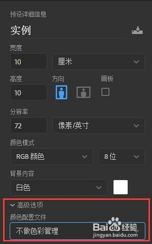 点击Ctrl+N新建,将需要的画布巨细设置好,找到“高级选项”栏面前目今的“ 颜色设置装备摆设文件”选项。