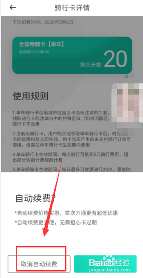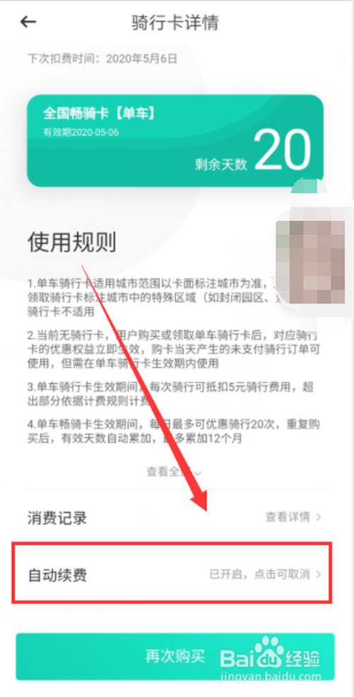 进入月卡利用详情界面,点击最下方的主动续费办理。