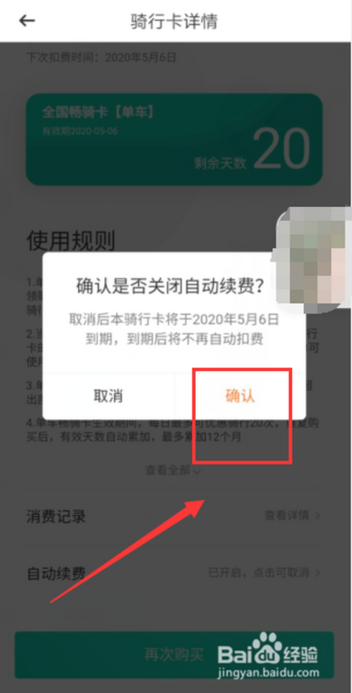 3、进入月卡利用详情界面,点击最下方的主动续费办理。