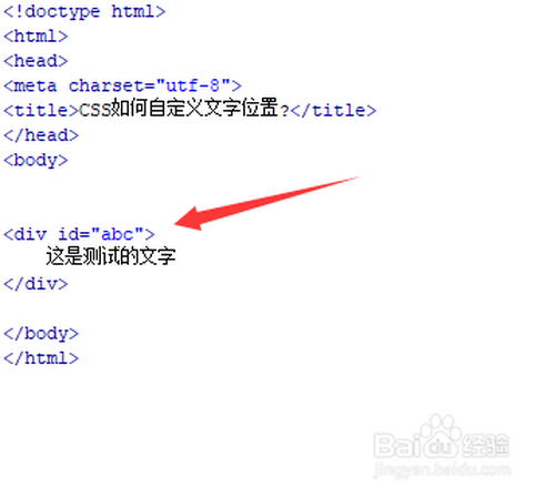 在test.html文件内,给div添加id属性,属性值为abc,用于下面设置样式。