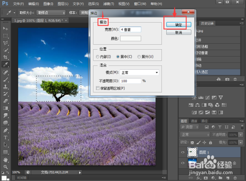 设置好描边宽度及颜色,将宽度设为4,颜色拔取需要的白色,按确定;