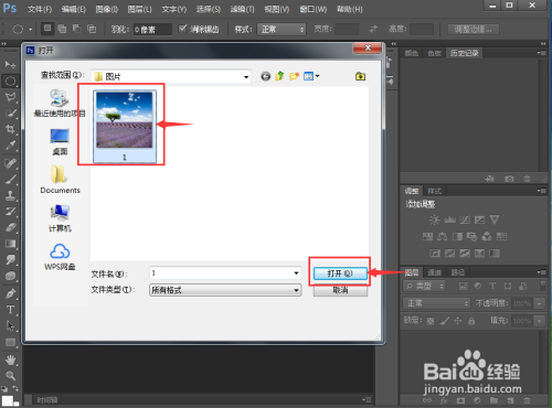 按ctrl+O,在打开窗口选中要处置的图片,点击打开;