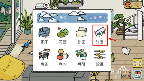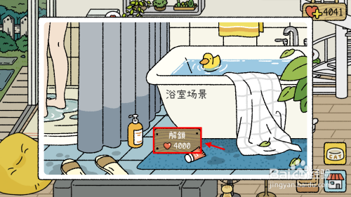 萌宅物语解锁浴室需要耗损4000爱心值,解锁完毕后点击“浴室”进入新场景。