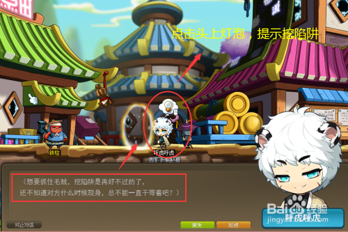 点击头上灯胆,在铁柱那领会环境后,知道抓住无脸怪最好的法子是挖陷阱。