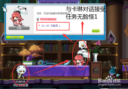 在解决师谍报商铺找紫色桌子后面的卡琳对话,接管使命无脸怪1.