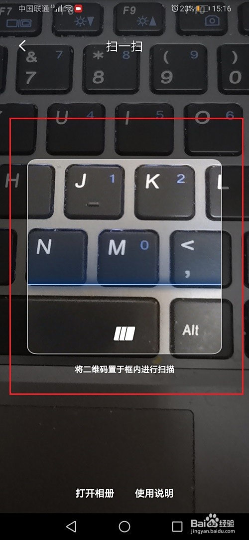 第四步点击打开相册,可以扫描手机相册中的二维码,如下图所示: