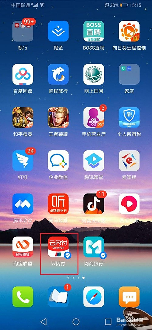 第一步手机上找到云闪付,登录本身的账号,如下图所示: