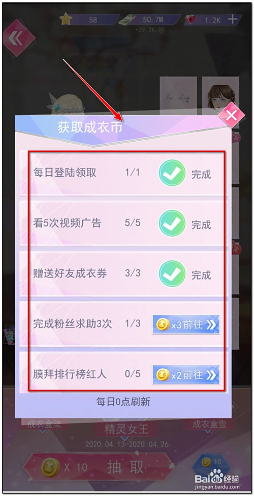 经由过程每日使命可获得裁缝币(使命每日零点更新)