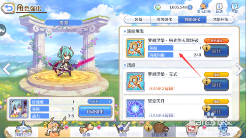 技术都是高爆发的输出,总的来说用她的时辰万万不要开主动战斗,竞技场强制主动那没法子。如下图所示。