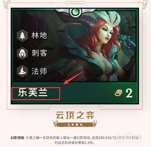 还有一个丛林的英雄是乐芙兰,作为法师,技术是放出锁链,对敌方造当作危险并眩晕,可以很好地节制敌方主要的英雄。