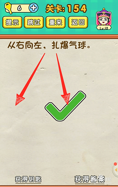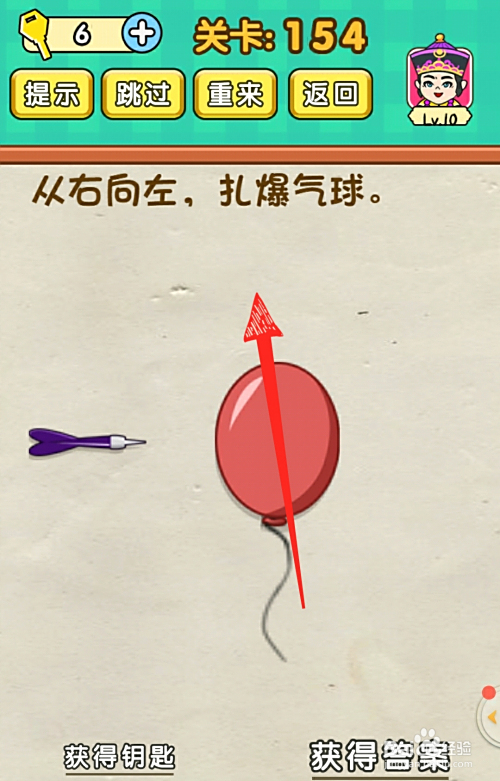 5.最后成果如下图,点击飞镖扎爆气球即可过关。