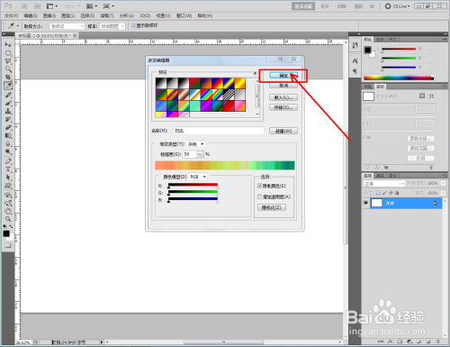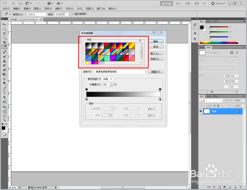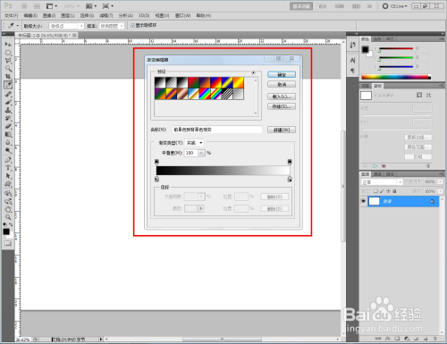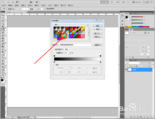 点击【渐变东西】-【线性渐变】,点按【可编纂渐变条】,弹出渐变编纂器;