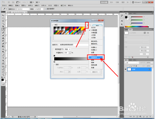 点击图示小三角-【杂色样本】,追加杂色样本到渐变选项栏中;