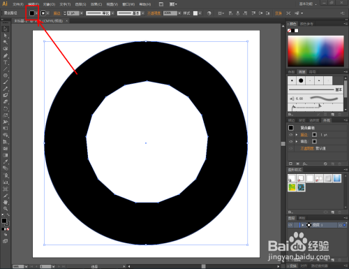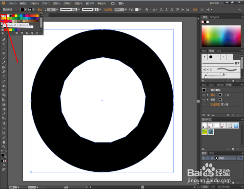 最后,点击【色板】,将图案设置为想要的颜色即可。这样我们的镂空十七边形圆形图案就建造完当作了。