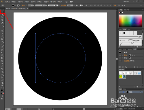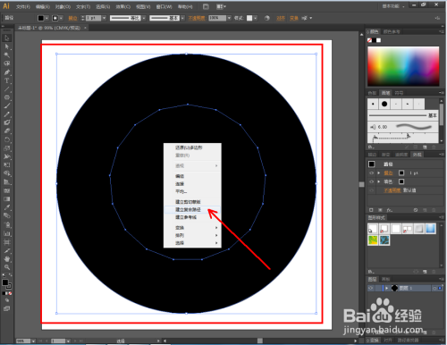 点击【选择东西】,同时选中圆形图案和十七边形图案。点击鼠标右键-【成立复合路径】,将两图案路径进行连系;