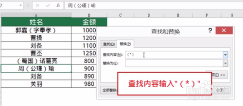 在查找和替代界面的 查找内容一栏输入(*)。如下图所示。