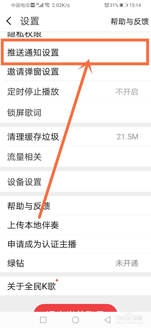进入设置界面后,点击【推送通知设置】进入。如下图所示