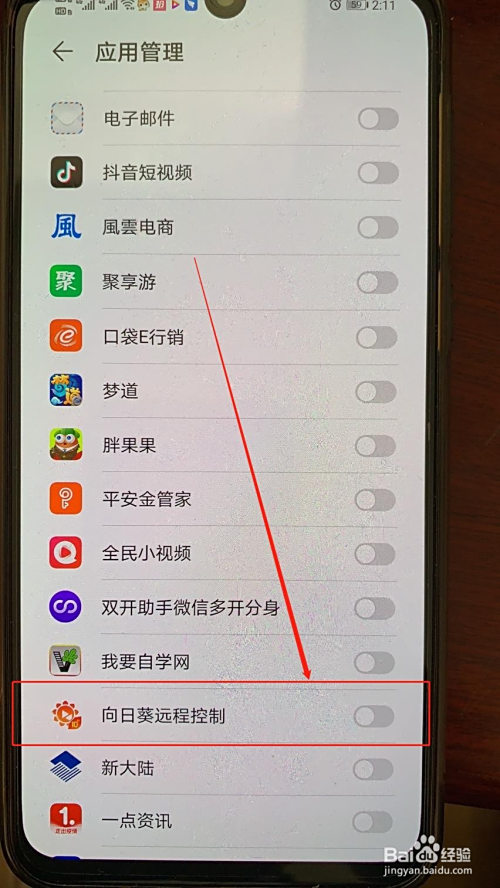 5.点开“应用办理”,在该界面找到“标的目的日葵”,将厥后边的开关条封闭即可。