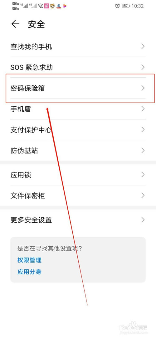 点开“暗码保险箱”,在该界面找到“应用办理”,点开
