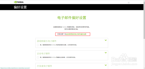 打开“注册电子邮件”页面,在页面中选择“在此处办理您的电子邮件偏好设置”。