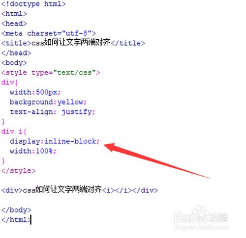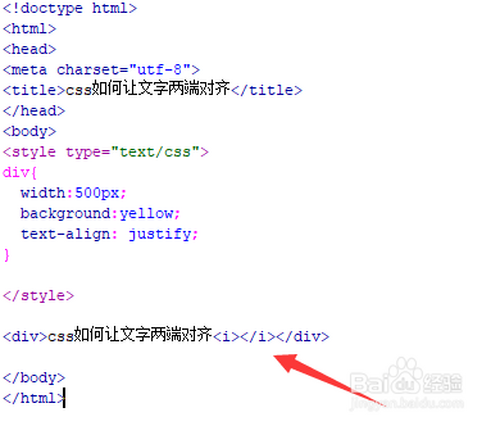 3、在css中,利用text-align属性设置为justify,同时设置i标签的宽度为100%。