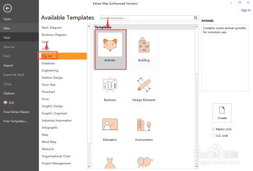 1、打开Edraw Max,在剪切画中双击动物;