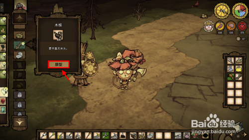 4、建造一本科技,然后打开合当作建造栏,解锁2个木板。