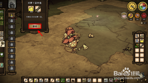 在建筑建造栏找到胡萝卜鼠神龛,第一项就是,点击建造后放在地面上待用。