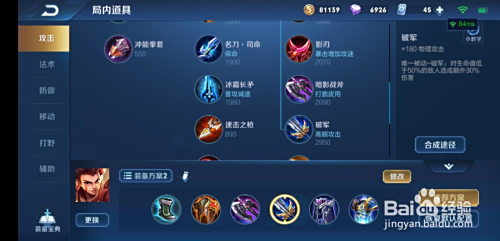 第四件装备,破军,增添物理进犯,被动提高物理危险。