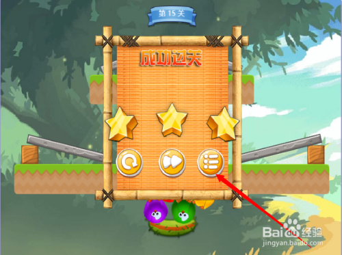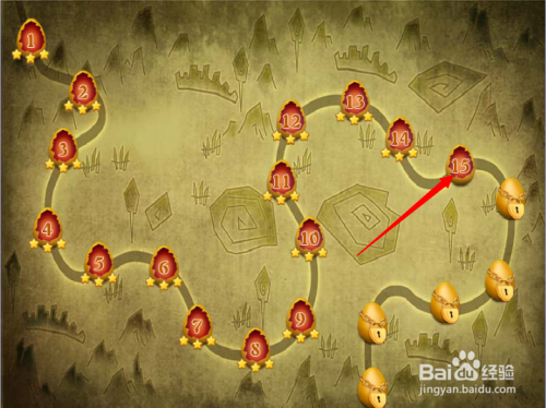 第二步:按照红色箭头,点击第十五关进入游戏。