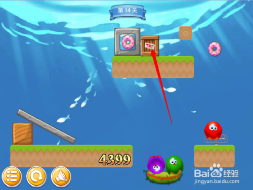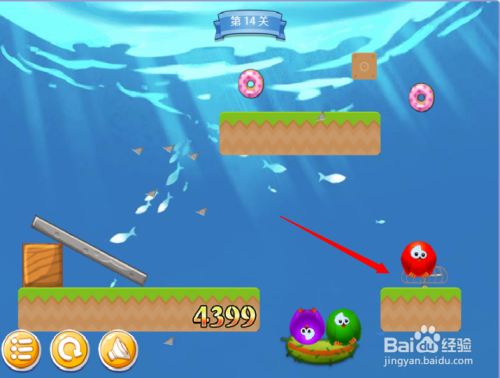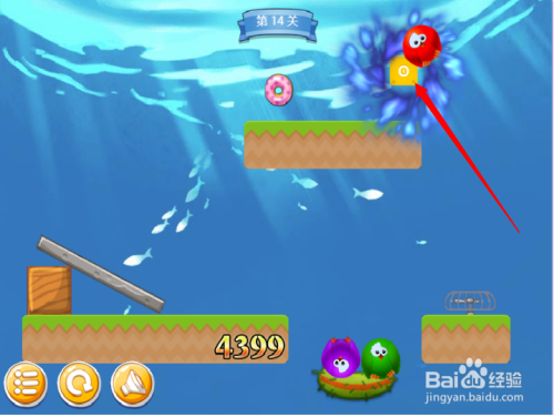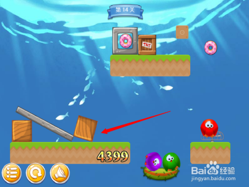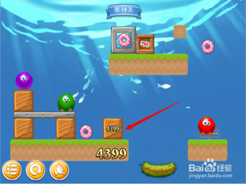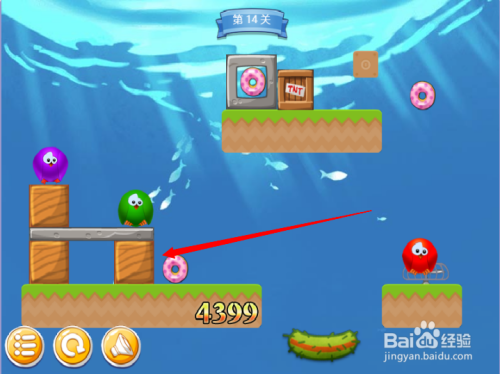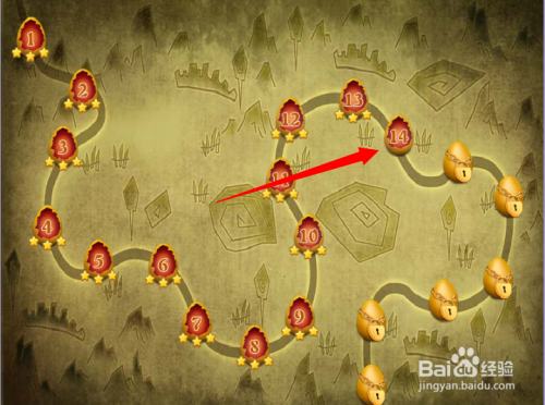 第二步:按照红色箭头,点击第十四关进入游戏。