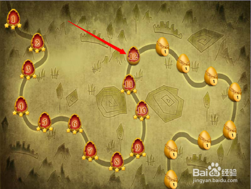 第二步:按照红色箭头,点击第十二关进入游戏。