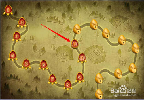 第二步:按照红色箭头,点击第十一关进入游戏。