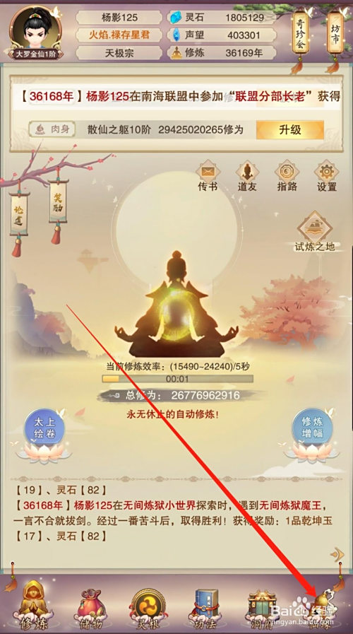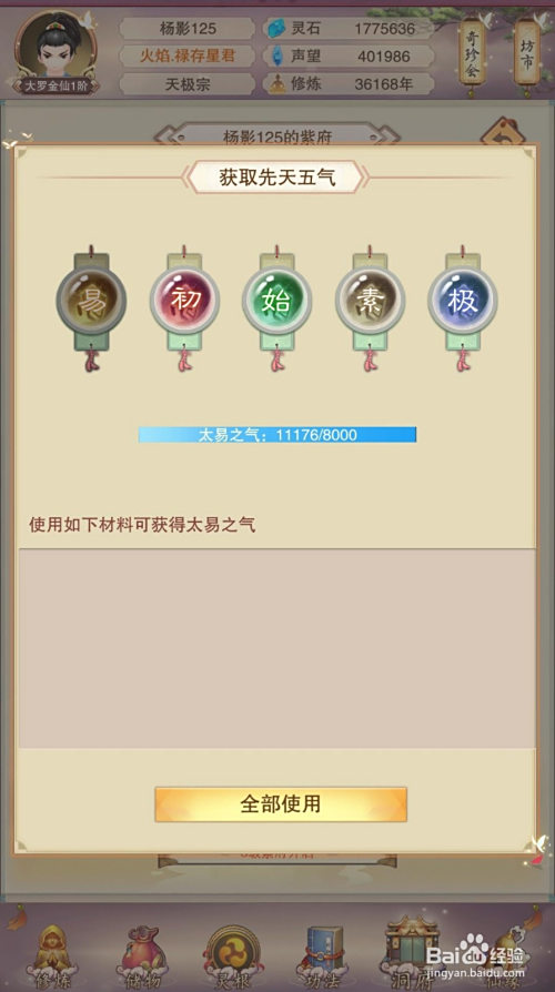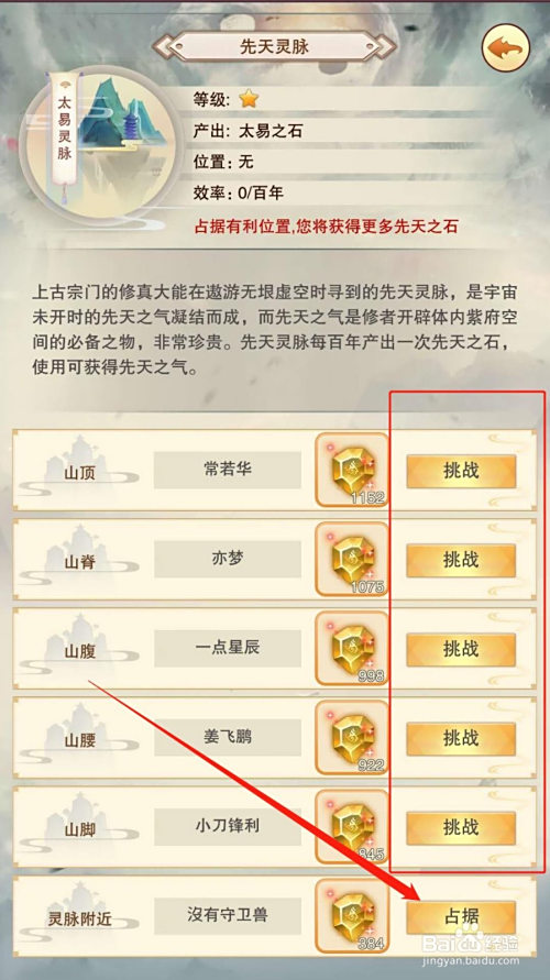 点击占有就可以收集先天五气了,若是战斗力强的话,可以挑战上面的玩家,可以加速收集效率