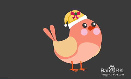 移动蝴蝶结到小胖鸟的帽子上面,改变巨细与位置让其与帽子天然的融合在一路。