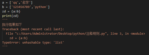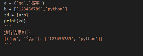 需要注重,若是将作为键的元组点窜当作列表,则会报错