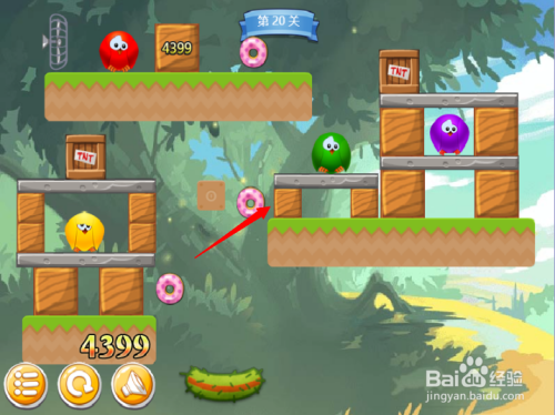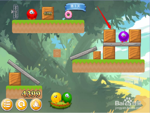 第六步:按照红色箭头,断根紫色小鸟上方障碍。