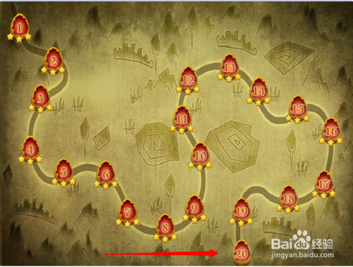 第二步:按照红色箭头,点击第二十关进入游戏。