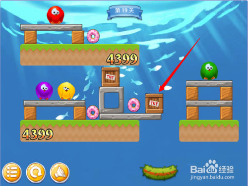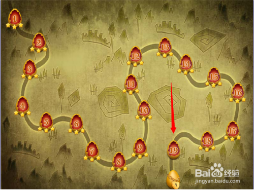 第二步:按照红色箭头,点击第十九关进入游戏。